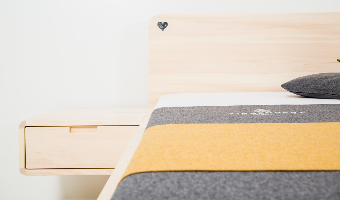Het bedframe en het hoofdeinde van 4 cm dik maken deel uit van onze traditionele Zirbenherz® kwaliteit.
