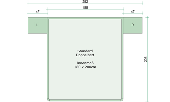 Die Seitenwahl der Nachttische bezieht sich immer aus der Sicht vor dem Bett stehend.
