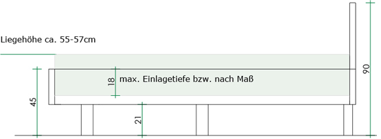 Innenmaß/Außenmaß = Matratzenmaß +8cm in der Breite, +8cm in der Länge